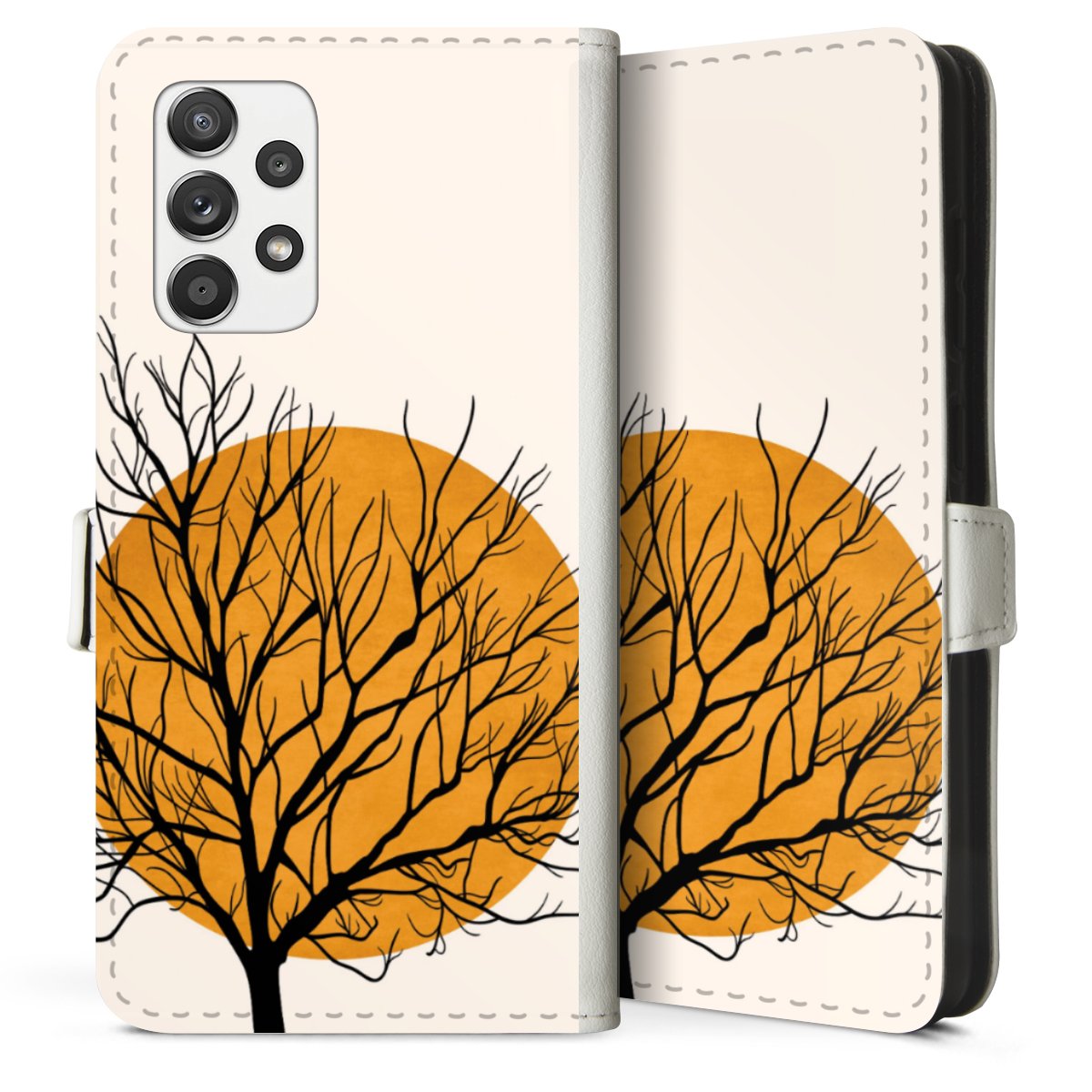 For our Sideflip Case we are using our advanced direct printing technology. The back and frontside are fully printabale, the inside of the phone bag is left unprinted. You can order the phone case without print, printed completely or also with a partial print.