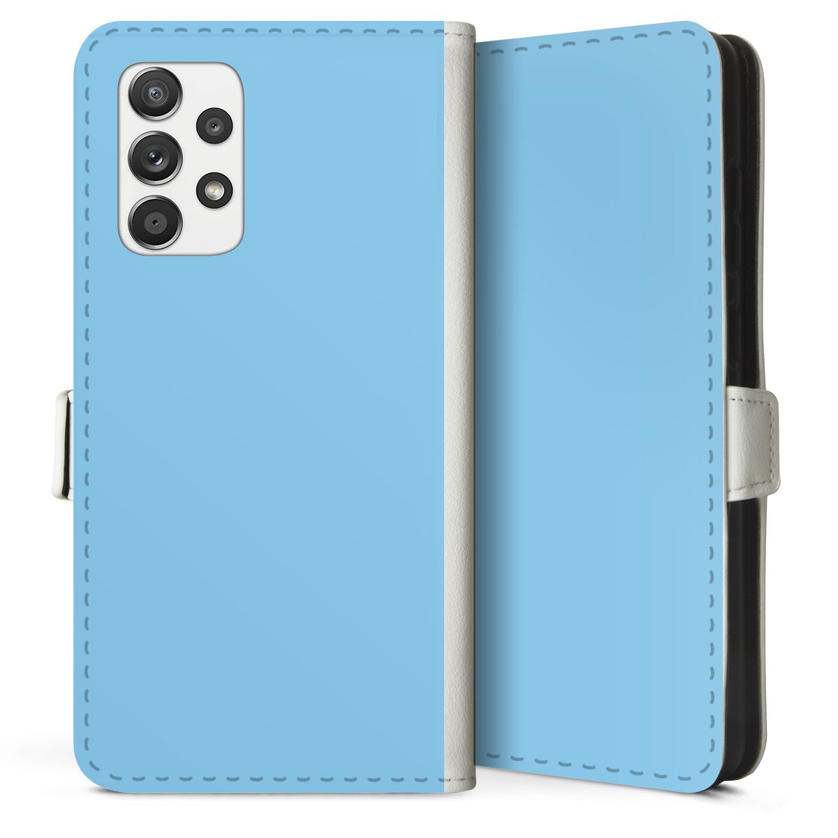 For our Sideflip Case we are using our advanced direct printing technology. The back and frontside are fully printabale, the inside of the phone bag is left unprinted. You can order the phone case without print, printed completely or also with a partial print.