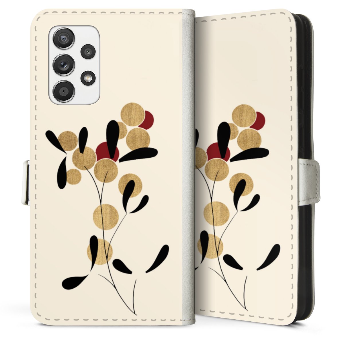 For our Sideflip Case we are using our advanced direct printing technology. The back and frontside are fully printabale, the inside of the phone bag is left unprinted. You can order the phone case without print, printed completely or also with a partial print.