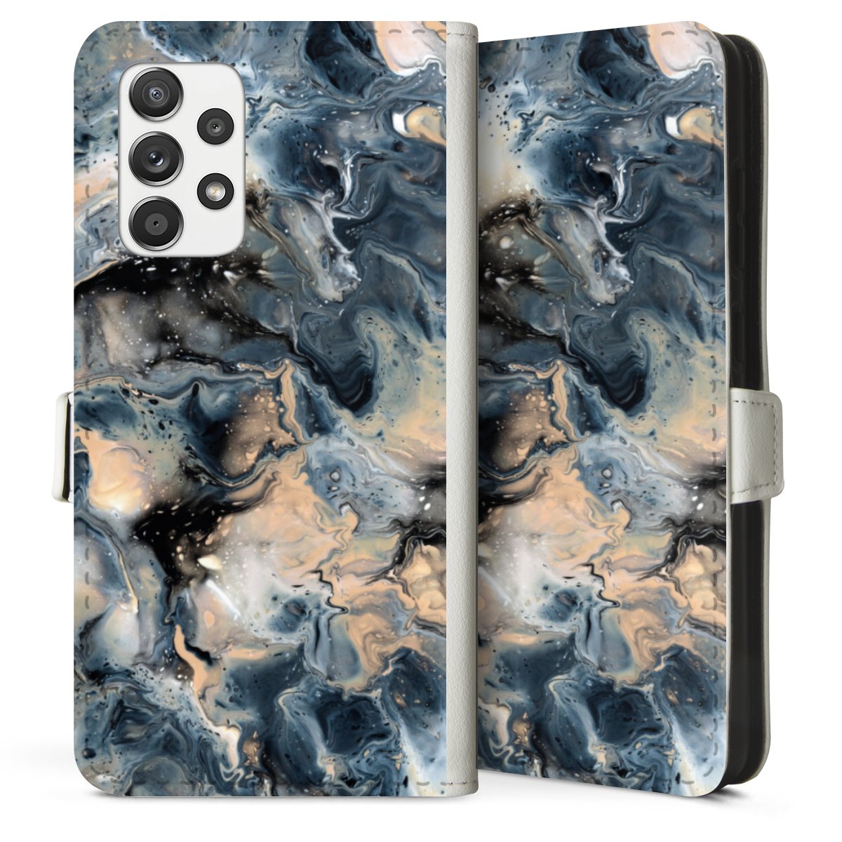 For our Sideflip Case we are using our advanced direct printing technology. The back and frontside are fully printabale, the inside of the phone bag is left unprinted. You can order the phone case without print, printed completely or also with a partial print.