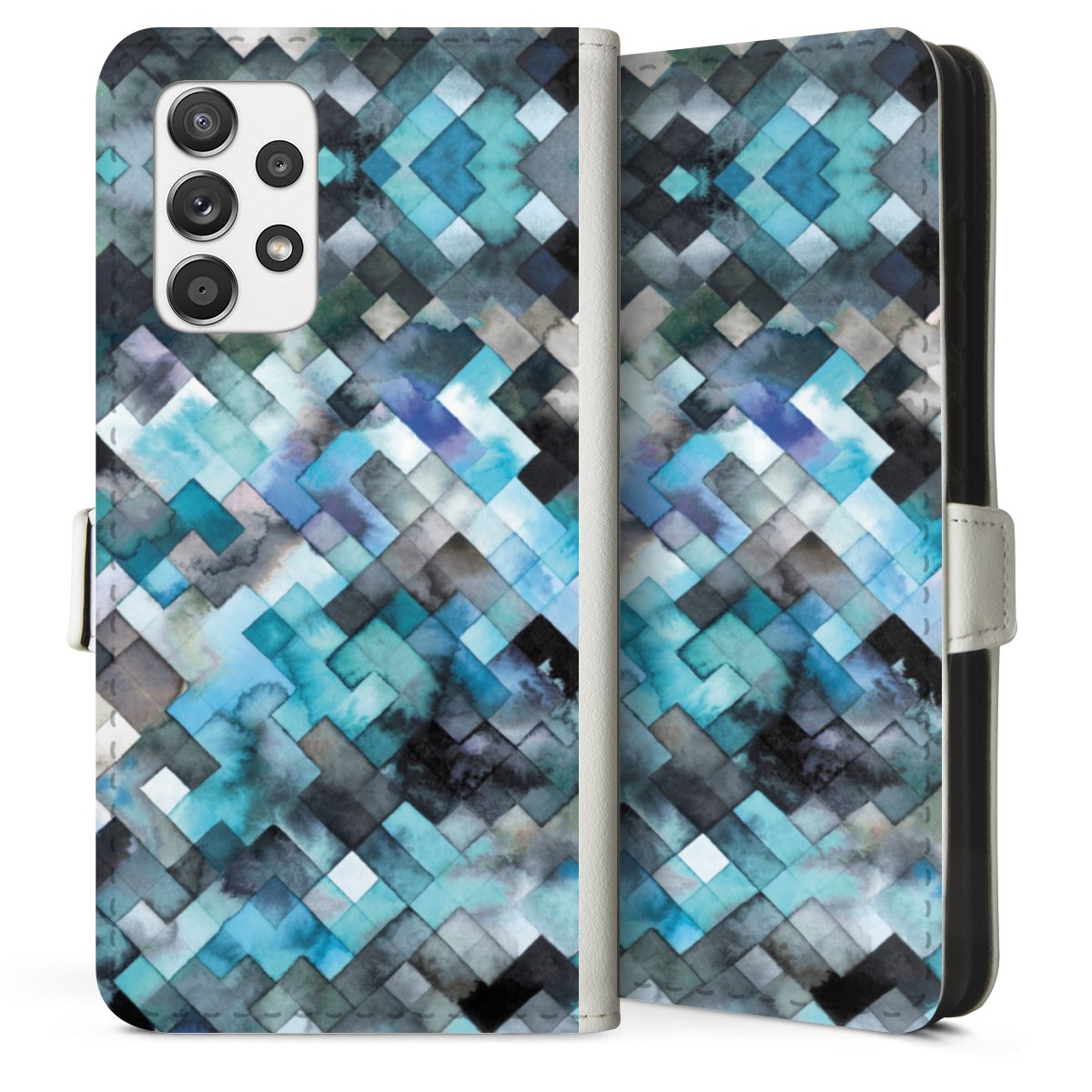 For our Sideflip Case we are using our advanced direct printing technology. The back and frontside are fully printabale, the inside of the phone bag is left unprinted. You can order the phone case without print, printed completely or also with a partial print.
