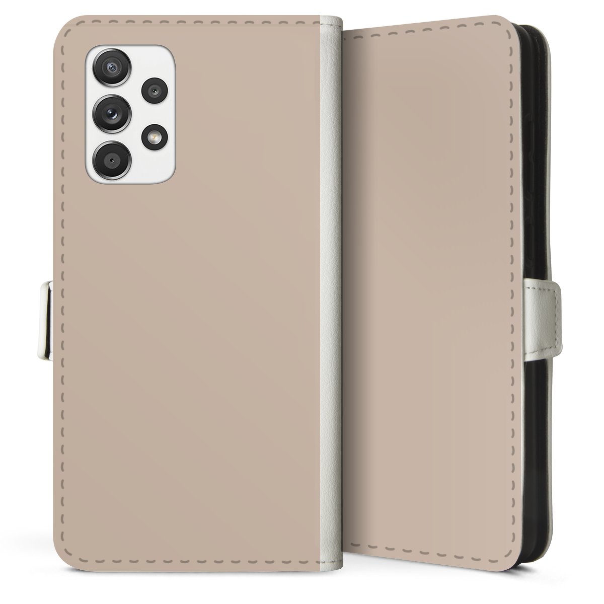 For our Sideflip Case we are using our advanced direct printing technology. The back and frontside are fully printabale, the inside of the phone bag is left unprinted. You can order the phone case without print, printed completely or also with a partial print.