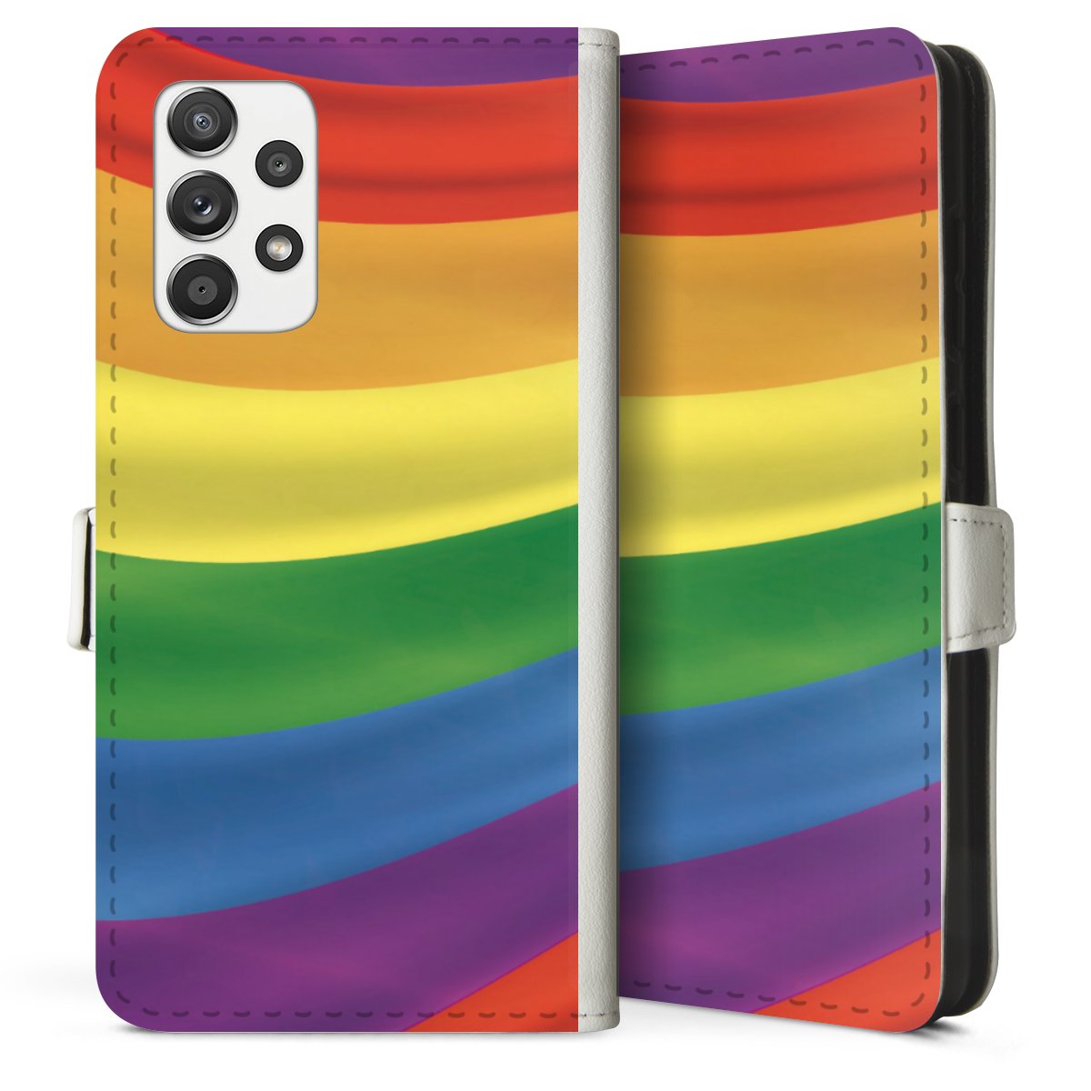 For our Sideflip Case we are using our advanced direct printing technology. The back and frontside are fully printabale, the inside of the phone bag is left unprinted. You can order the phone case without print, printed completely or also with a partial print.