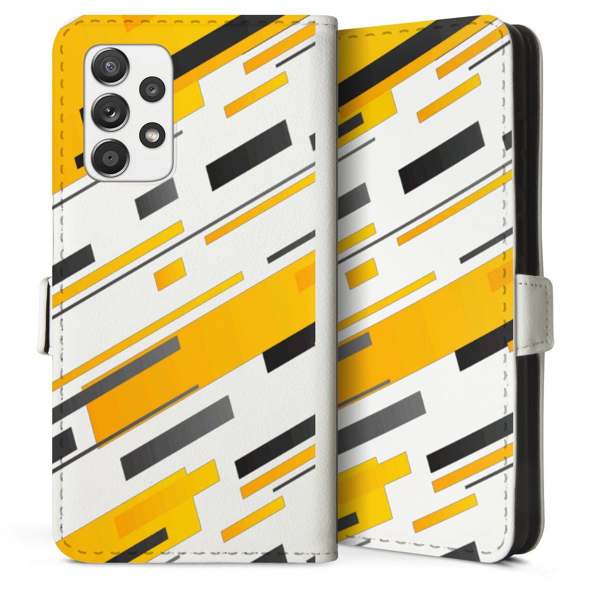 For our Sideflip Case we are using our advanced direct printing technology. The back and frontside are fully printabale, the inside of the phone bag is left unprinted. You can order the phone case without print, printed completely or also with a partial print.