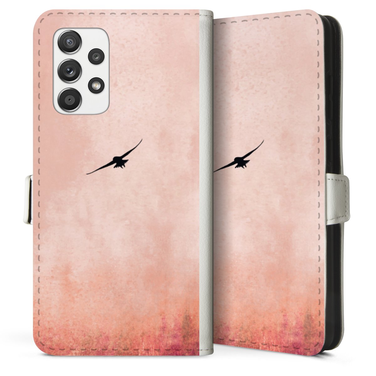For our Sideflip Case we are using our advanced direct printing technology. The back and frontside are fully printabale, the inside of the phone bag is left unprinted. You can order the phone case without print, printed completely or also with a partial print.