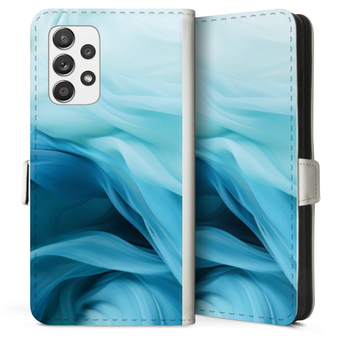 For our Sideflip Case we are using our advanced direct printing technology. The back and frontside are fully printabale, the inside of the phone bag is left unprinted. You can order the phone case without print, printed completely or also with a partial print.