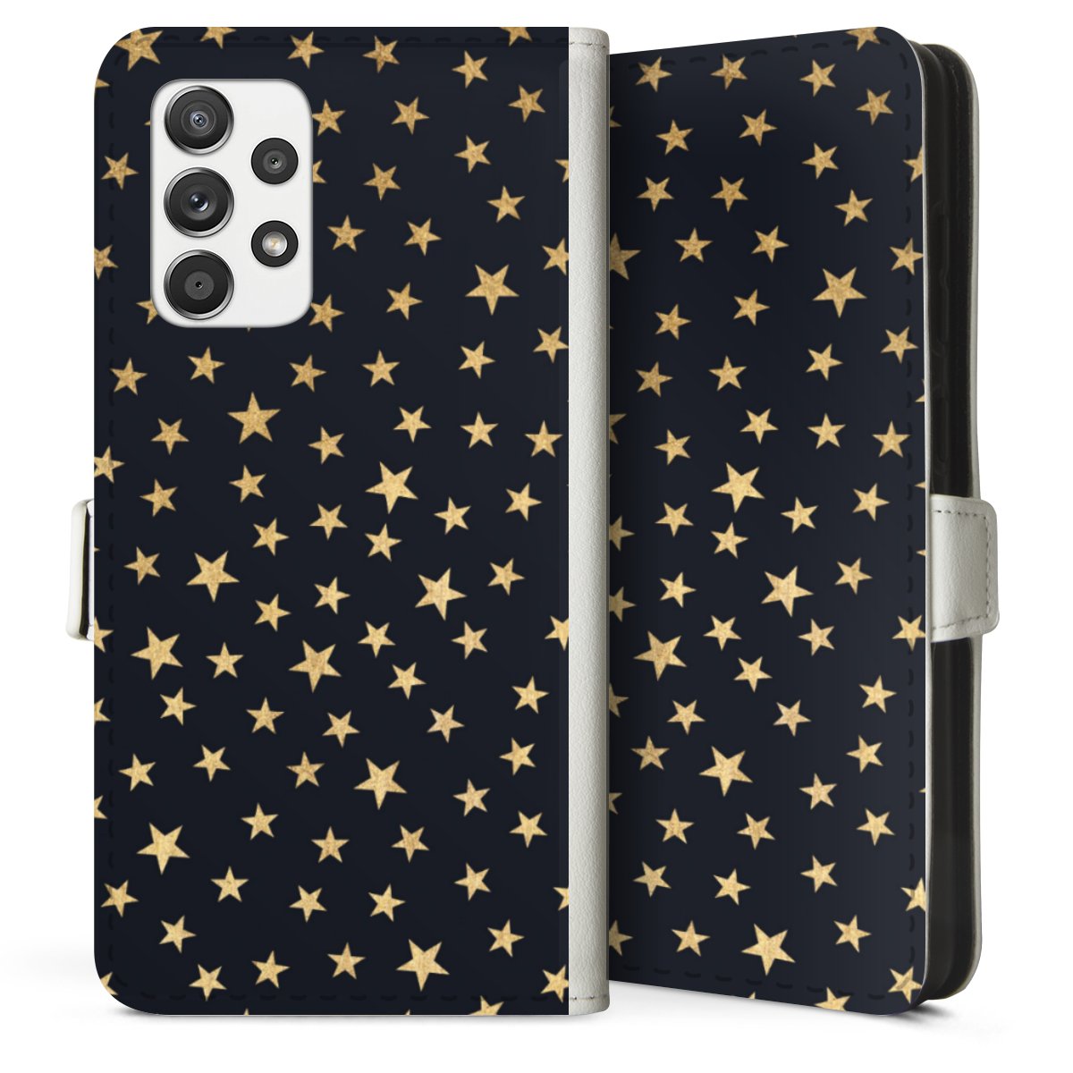For our Sideflip Case we are using our advanced direct printing technology. The back and frontside are fully printabale, the inside of the phone bag is left unprinted. You can order the phone case without print, printed completely or also with a partial print.