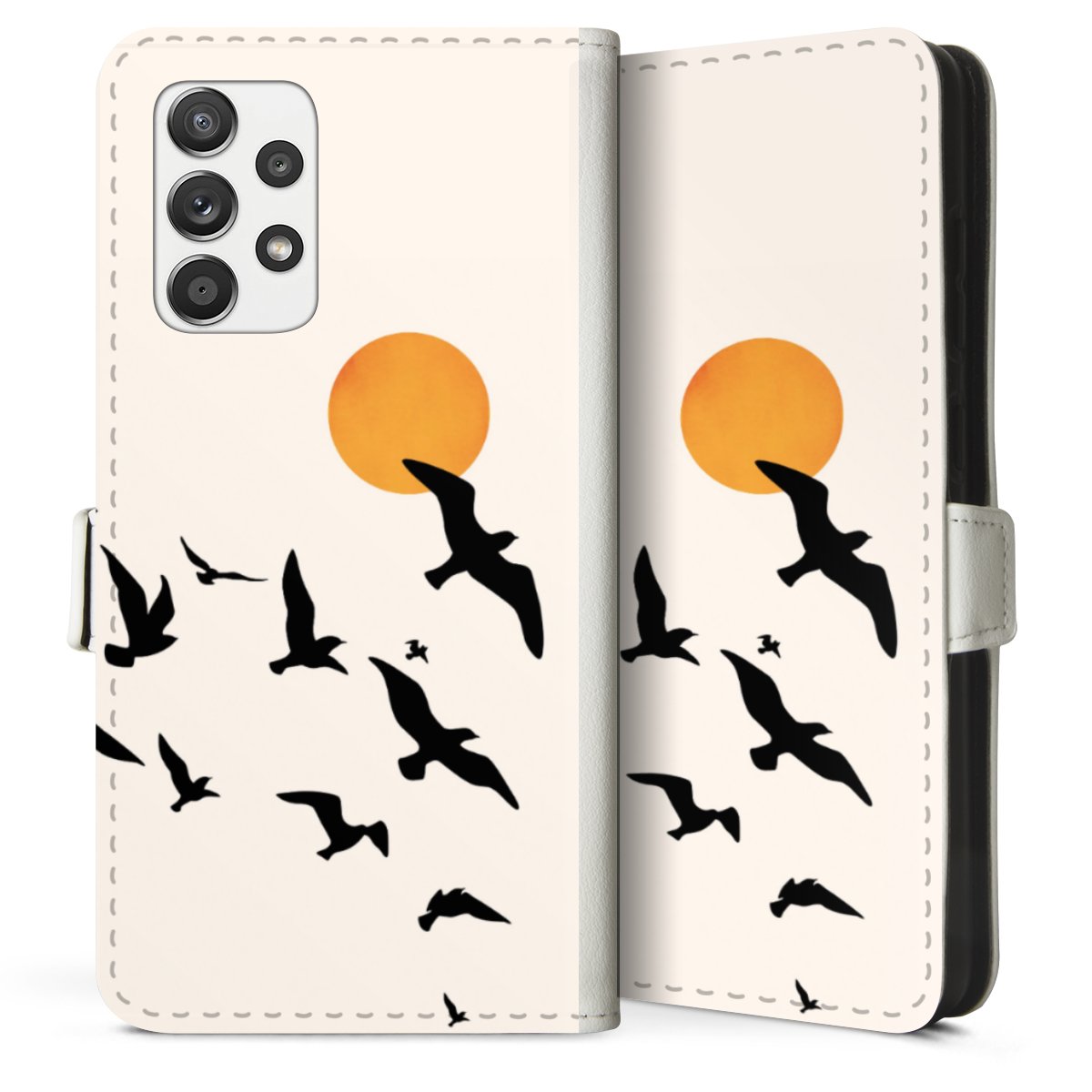 For our Sideflip Case we are using our advanced direct printing technology. The back and frontside are fully printabale, the inside of the phone bag is left unprinted. You can order the phone case without print, printed completely or also with a partial print.