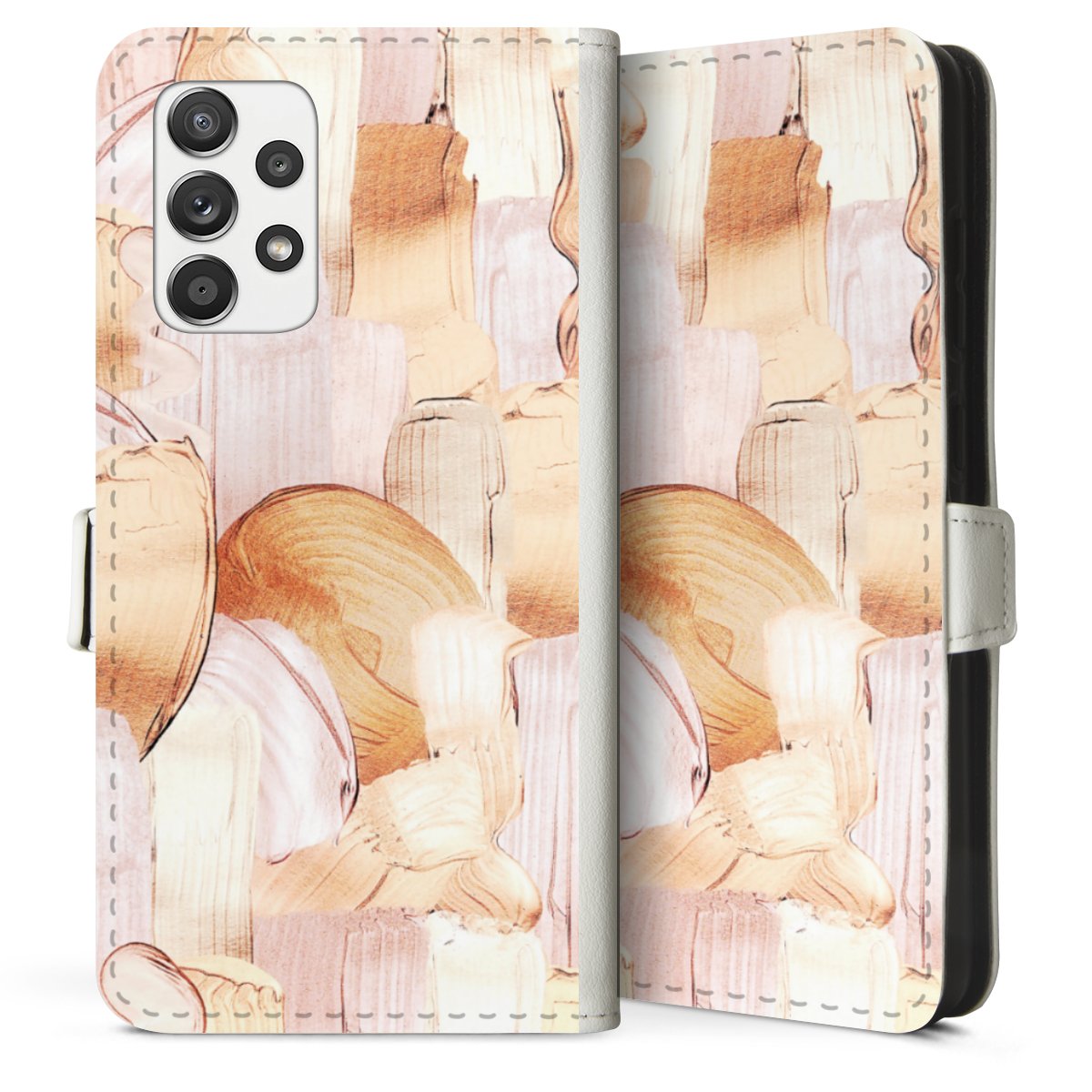 For our Sideflip Case we are using our advanced direct printing technology. The back and frontside are fully printabale, the inside of the phone bag is left unprinted. You can order the phone case without print, printed completely or also with a partial print.