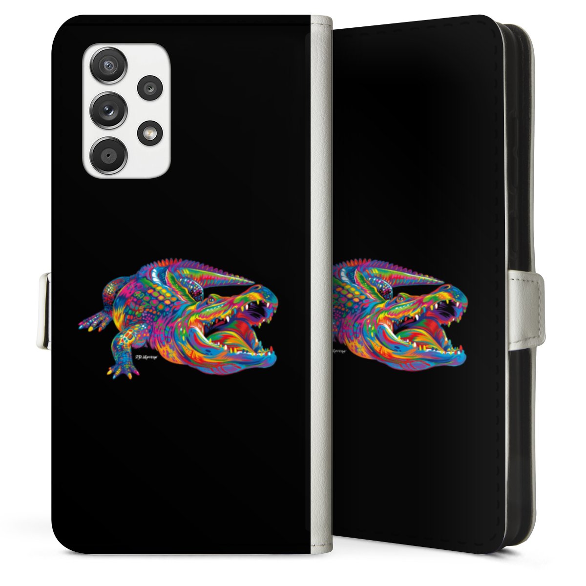 For our Sideflip Case we are using our advanced direct printing technology. The back and frontside are fully printabale, the inside of the phone bag is left unprinted. You can order the phone case without print, printed completely or also with a partial print.