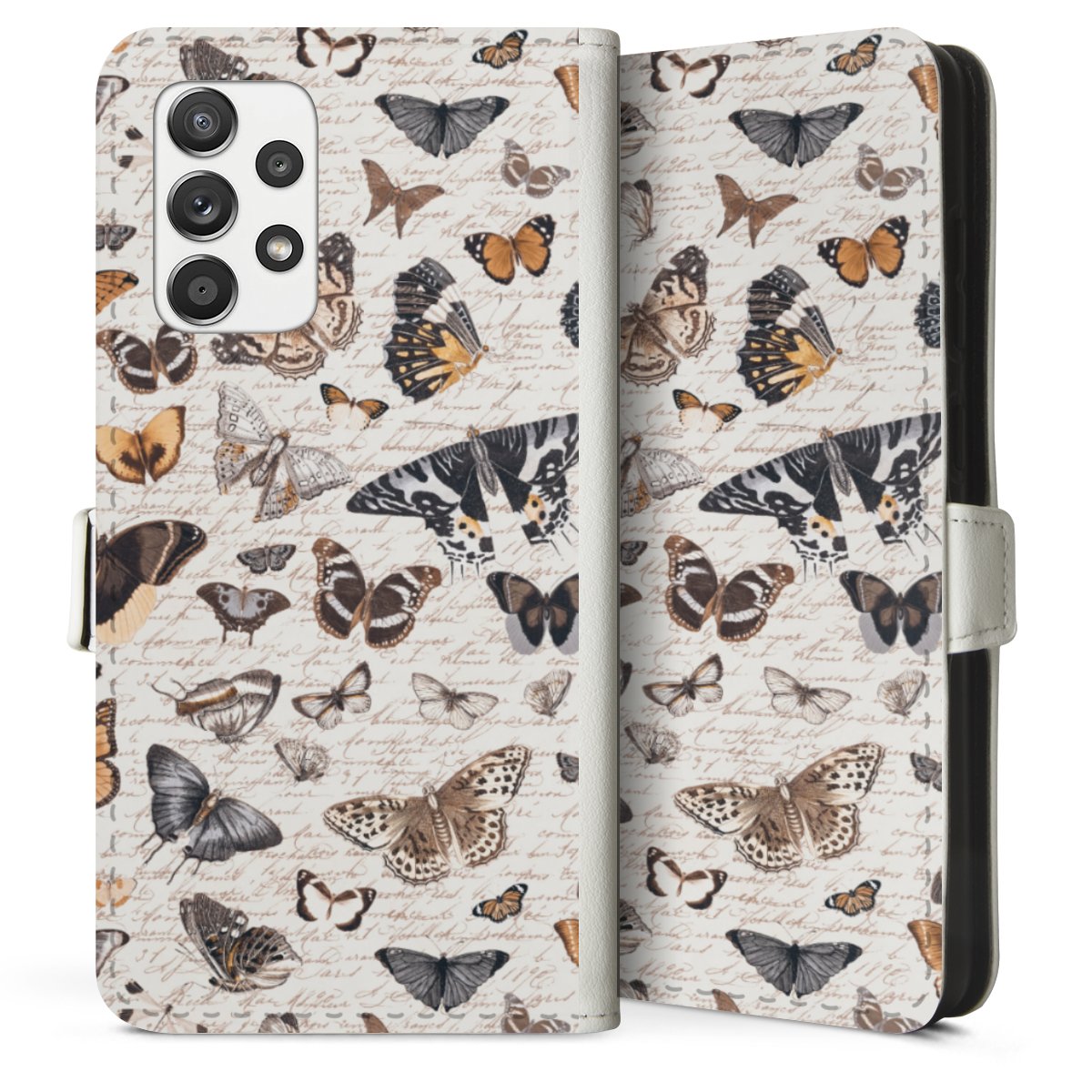 For our Sideflip Case we are using our advanced direct printing technology. The back and frontside are fully printabale, the inside of the phone bag is left unprinted. You can order the phone case without print, printed completely or also with a partial print.