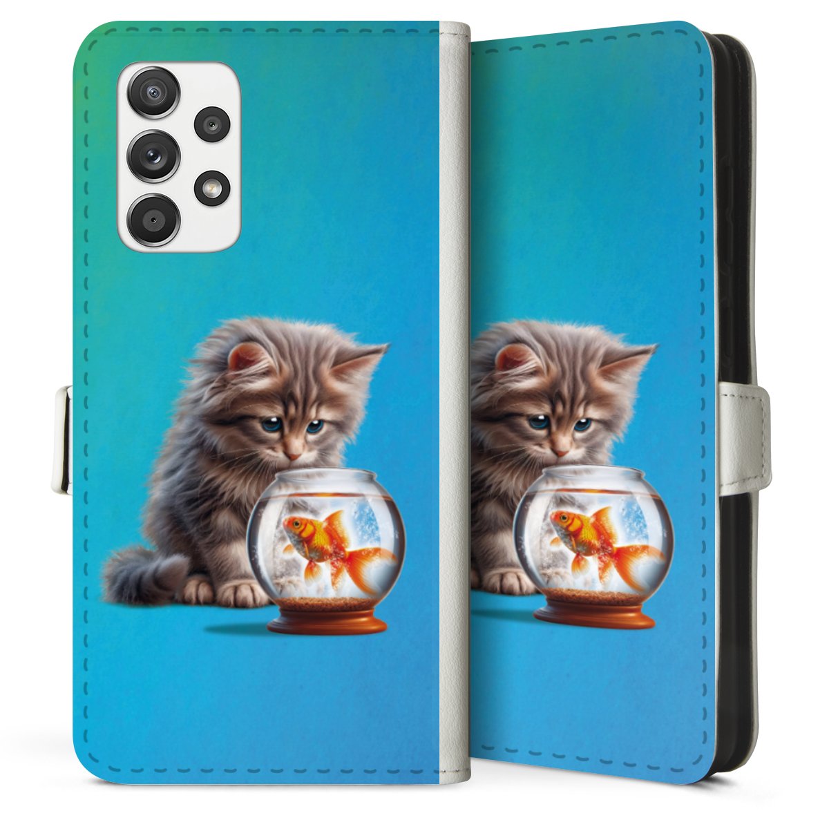 For our Sideflip Case we are using our advanced direct printing technology. The back and frontside are fully printabale, the inside of the phone bag is left unprinted. You can order the phone case without print, printed completely or also with a partial print.
