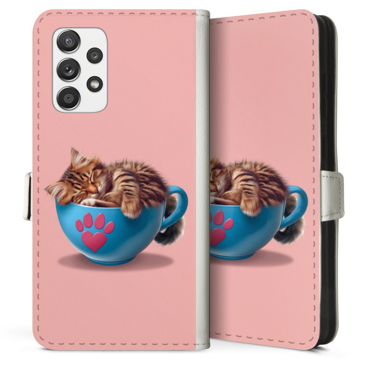 For our Sideflip Case we are using our advanced direct printing technology. The back and frontside are fully printabale, the inside of the phone bag is left unprinted. You can order the phone case without print, printed completely or also with a partial print.