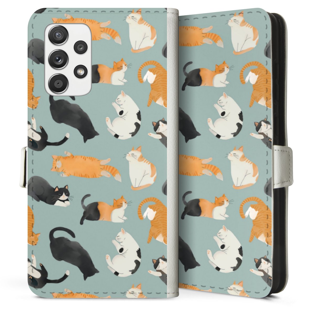 For our Sideflip Case we are using our advanced direct printing technology. The back and frontside are fully printabale, the inside of the phone bag is left unprinted. You can order the phone case without print, printed completely or also with a partial print.