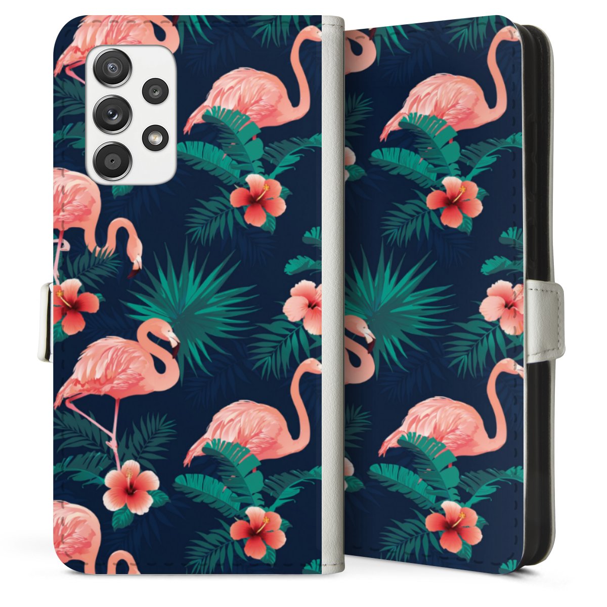 For our Sideflip Case we are using our advanced direct printing technology. The back and frontside are fully printabale, the inside of the phone bag is left unprinted. You can order the phone case without print, printed completely or also with a partial print.