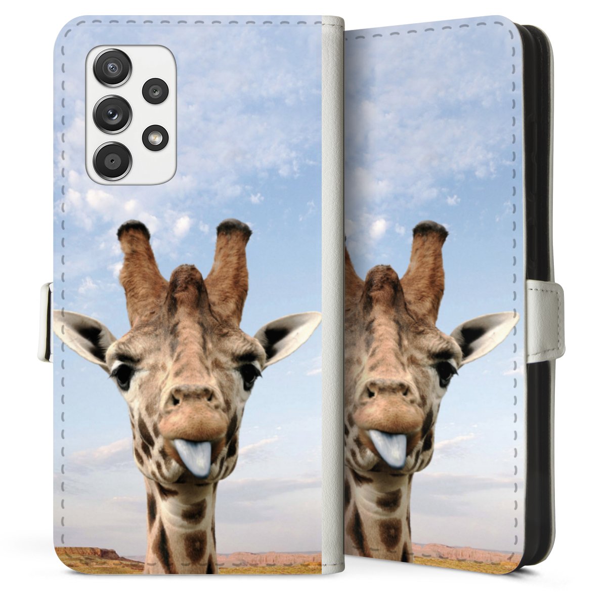For our Sideflip Case we are using our advanced direct printing technology. The back and frontside are fully printabale, the inside of the phone bag is left unprinted. You can order the phone case without print, printed completely or also with a partial print.