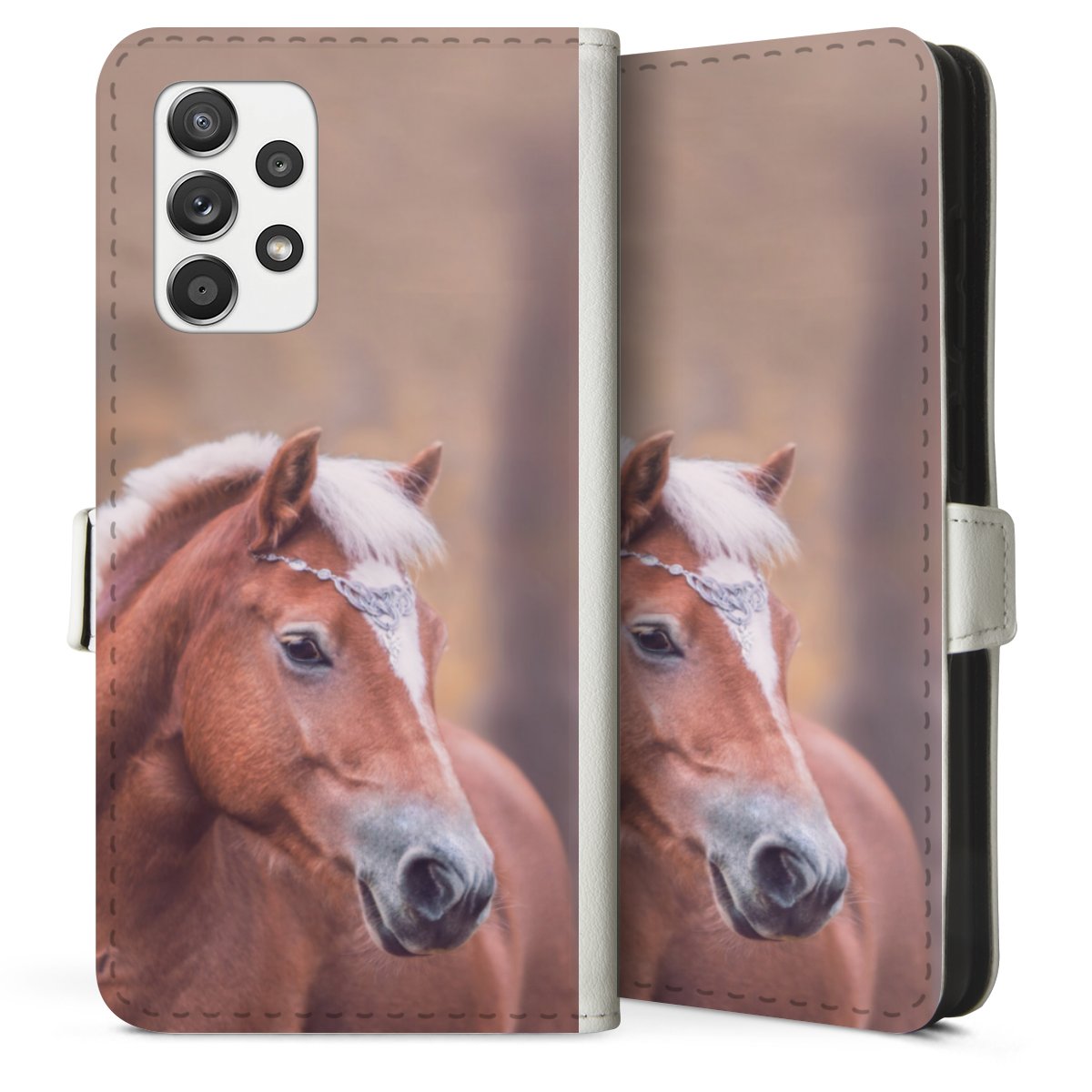 For our Sideflip Case we are using our advanced direct printing technology. The back and frontside are fully printabale, the inside of the phone bag is left unprinted. You can order the phone case without print, printed completely or also with a partial print.
