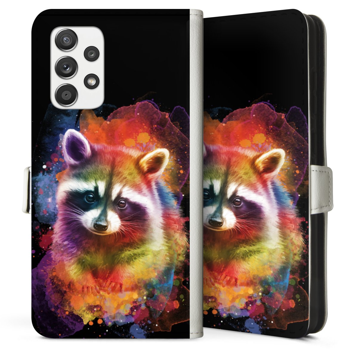 For our Sideflip Case we are using our advanced direct printing technology. The back and frontside are fully printabale, the inside of the phone bag is left unprinted. You can order the phone case without print, printed completely or also with a partial print.