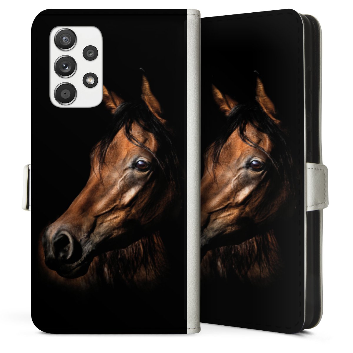 For our Sideflip Case we are using our advanced direct printing technology. The back and frontside are fully printabale, the inside of the phone bag is left unprinted. You can order the phone case without print, printed completely or also with a partial print.