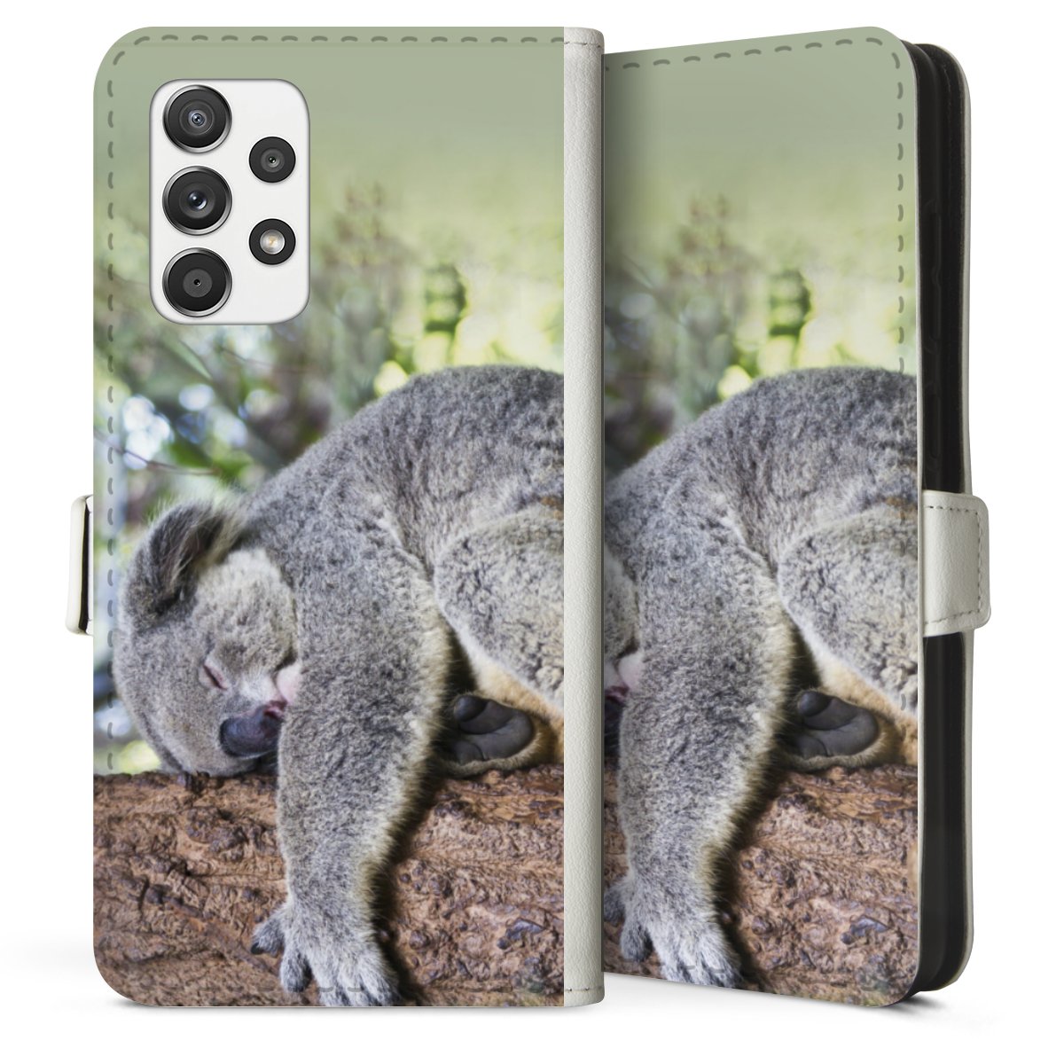 For our Sideflip Case we are using our advanced direct printing technology. The back and frontside are fully printabale, the inside of the phone bag is left unprinted. You can order the phone case without print, printed completely or also with a partial print.