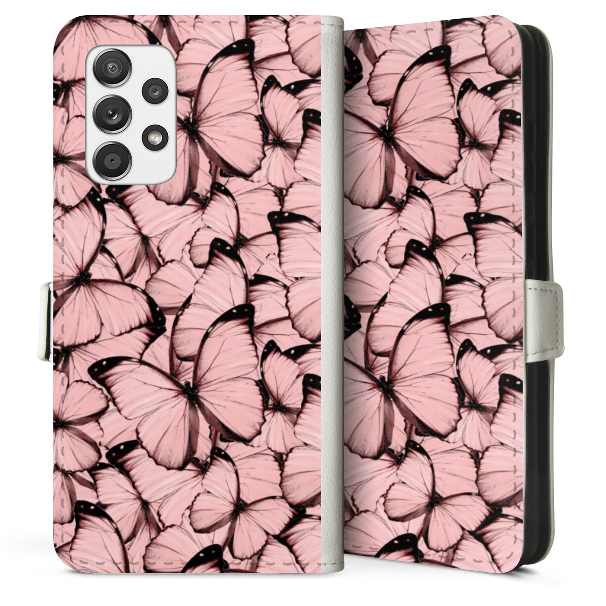 For our Sideflip Case we are using our advanced direct printing technology. The back and frontside are fully printabale, the inside of the phone bag is left unprinted. You can order the phone case without print, printed completely or also with a partial print.