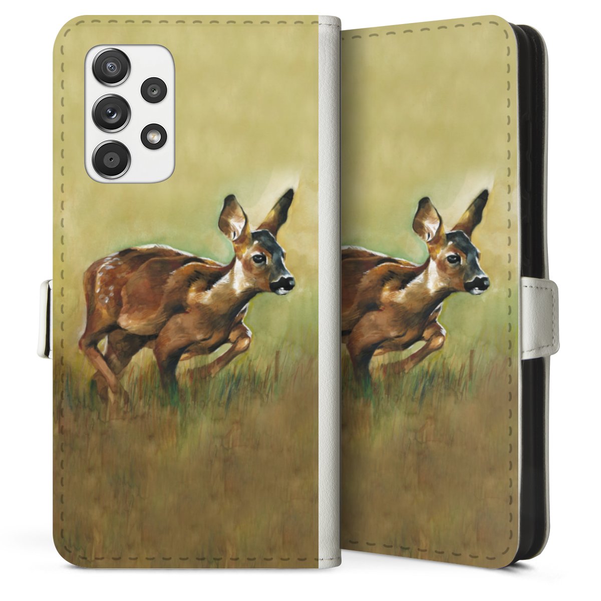 For our Sideflip Case we are using our advanced direct printing technology. The back and frontside are fully printabale, the inside of the phone bag is left unprinted. You can order the phone case without print, printed completely or also with a partial print.