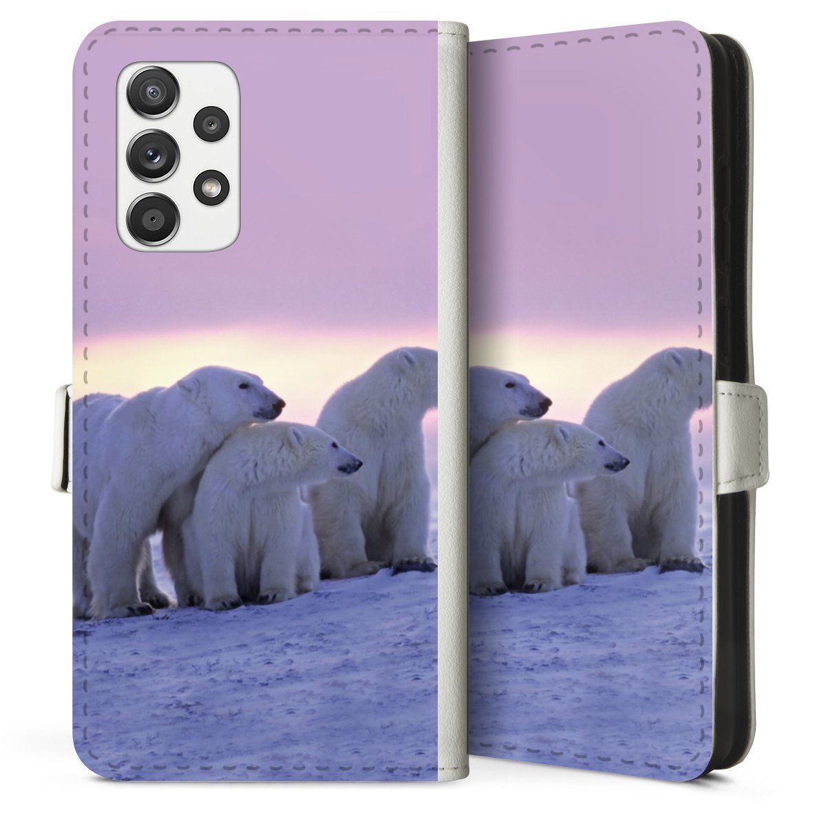For our Sideflip Case we are using our advanced direct printing technology. The back and frontside are fully printabale, the inside of the phone bag is left unprinted. You can order the phone case without print, printed completely or also with a partial print.