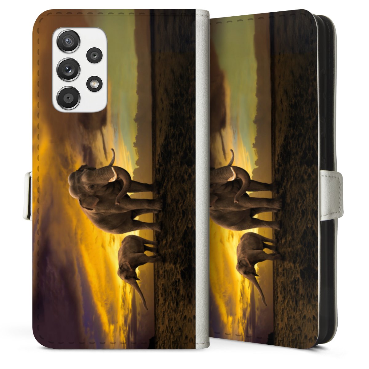 For our Sideflip Case we are using our advanced direct printing technology. The back and frontside are fully printabale, the inside of the phone bag is left unprinted. You can order the phone case without print, printed completely or also with a partial print.