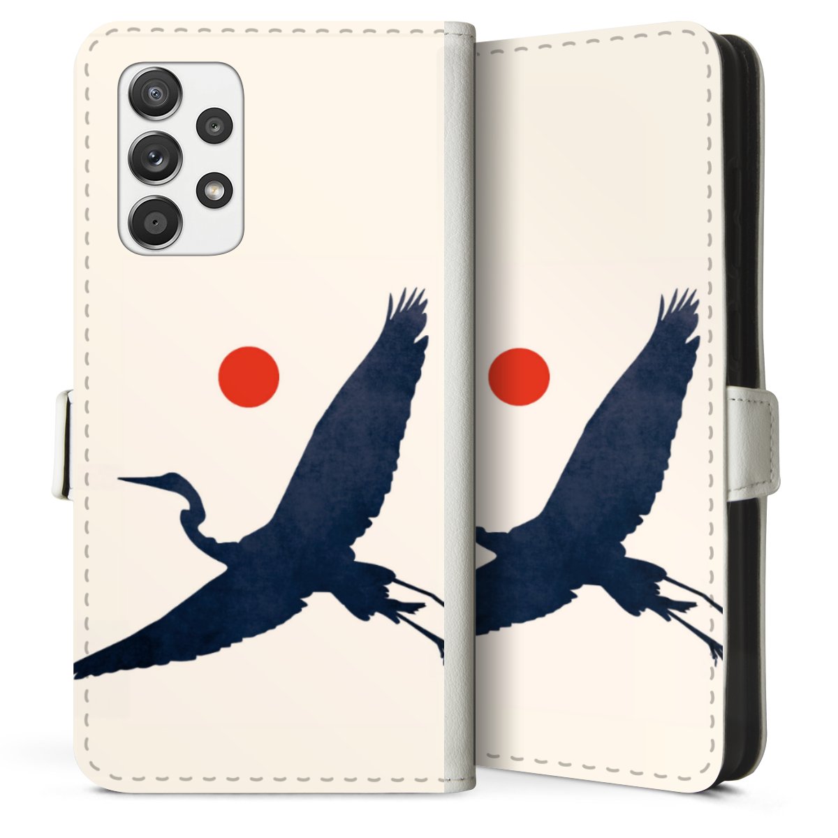 For our Sideflip Case we are using our advanced direct printing technology. The back and frontside are fully printabale, the inside of the phone bag is left unprinted. You can order the phone case without print, printed completely or also with a partial print.