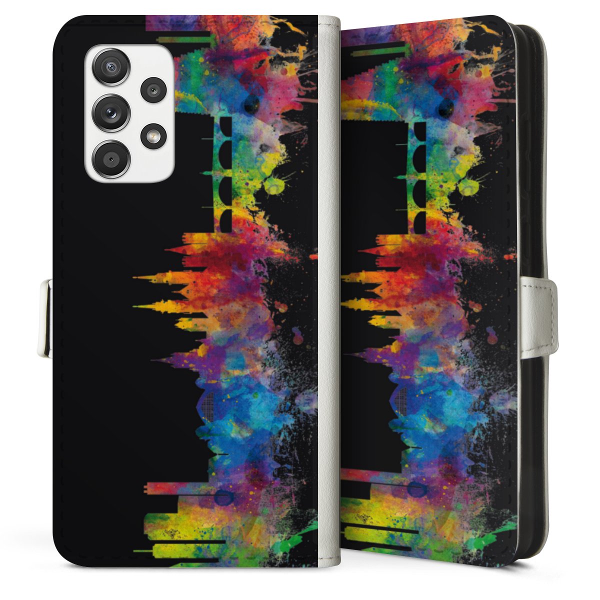 For our Sideflip Case we are using our advanced direct printing technology. The back and frontside are fully printabale, the inside of the phone bag is left unprinted. You can order the phone case without print, printed completely or also with a partial print.