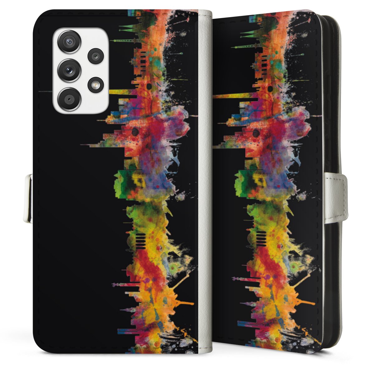 For our Sideflip Case we are using our advanced direct printing technology. The back and frontside are fully printabale, the inside of the phone bag is left unprinted. You can order the phone case without print, printed completely or also with a partial print.