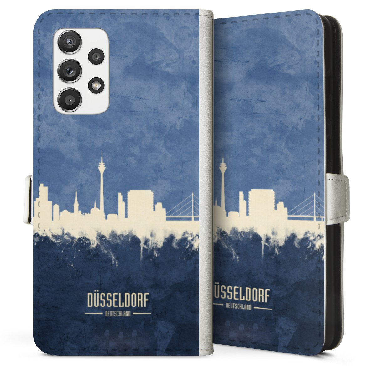 For our Sideflip Case we are using our advanced direct printing technology. The back and frontside are fully printabale, the inside of the phone bag is left unprinted. You can order the phone case without print, printed completely or also with a partial print.