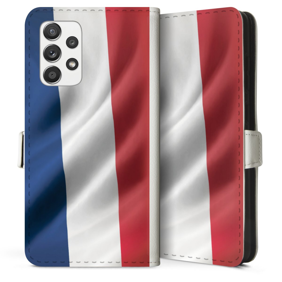 For our Sideflip Case we are using our advanced direct printing technology. The back and frontside are fully printabale, the inside of the phone bag is left unprinted. You can order the phone case without print, printed completely or also with a partial print.