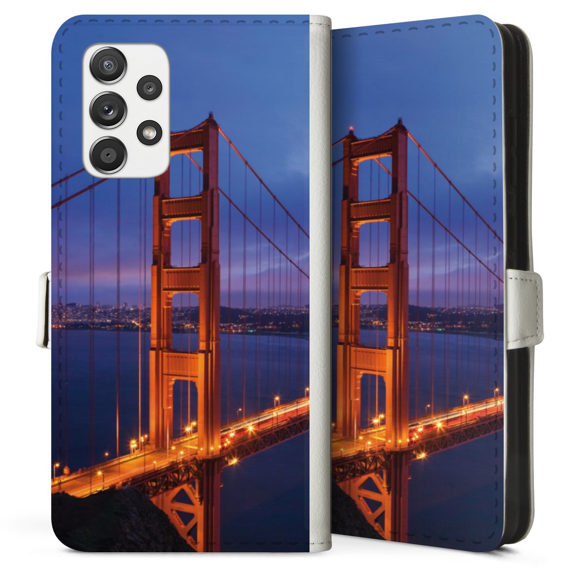 For our Sideflip Case we are using our advanced direct printing technology. The back and frontside are fully printabale, the inside of the phone bag is left unprinted. You can order the phone case without print, printed completely or also with a partial print.