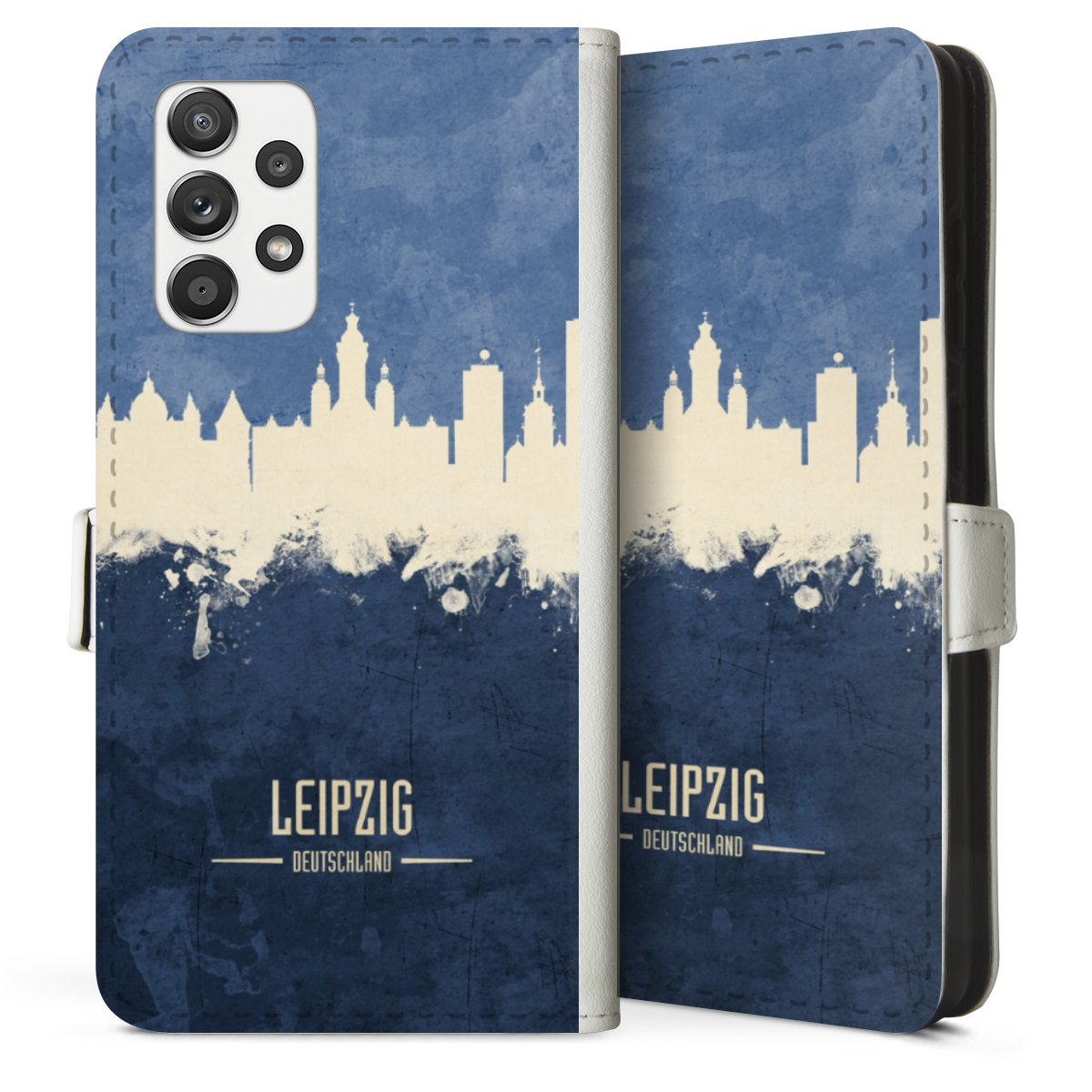 For our Sideflip Case we are using our advanced direct printing technology. The back and frontside are fully printabale, the inside of the phone bag is left unprinted. You can order the phone case without print, printed completely or also with a partial print.
