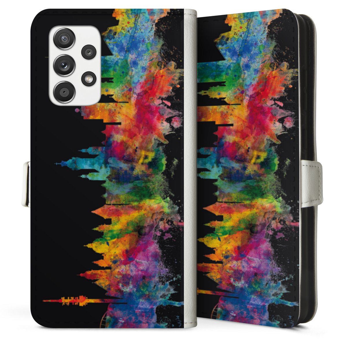 For our Sideflip Case we are using our advanced direct printing technology. The back and frontside are fully printabale, the inside of the phone bag is left unprinted. You can order the phone case without print, printed completely or also with a partial print.