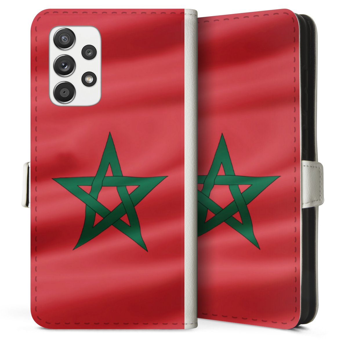 For our Sideflip Case we are using our advanced direct printing technology. The back and frontside are fully printabale, the inside of the phone bag is left unprinted. You can order the phone case without print, printed completely or also with a partial print.