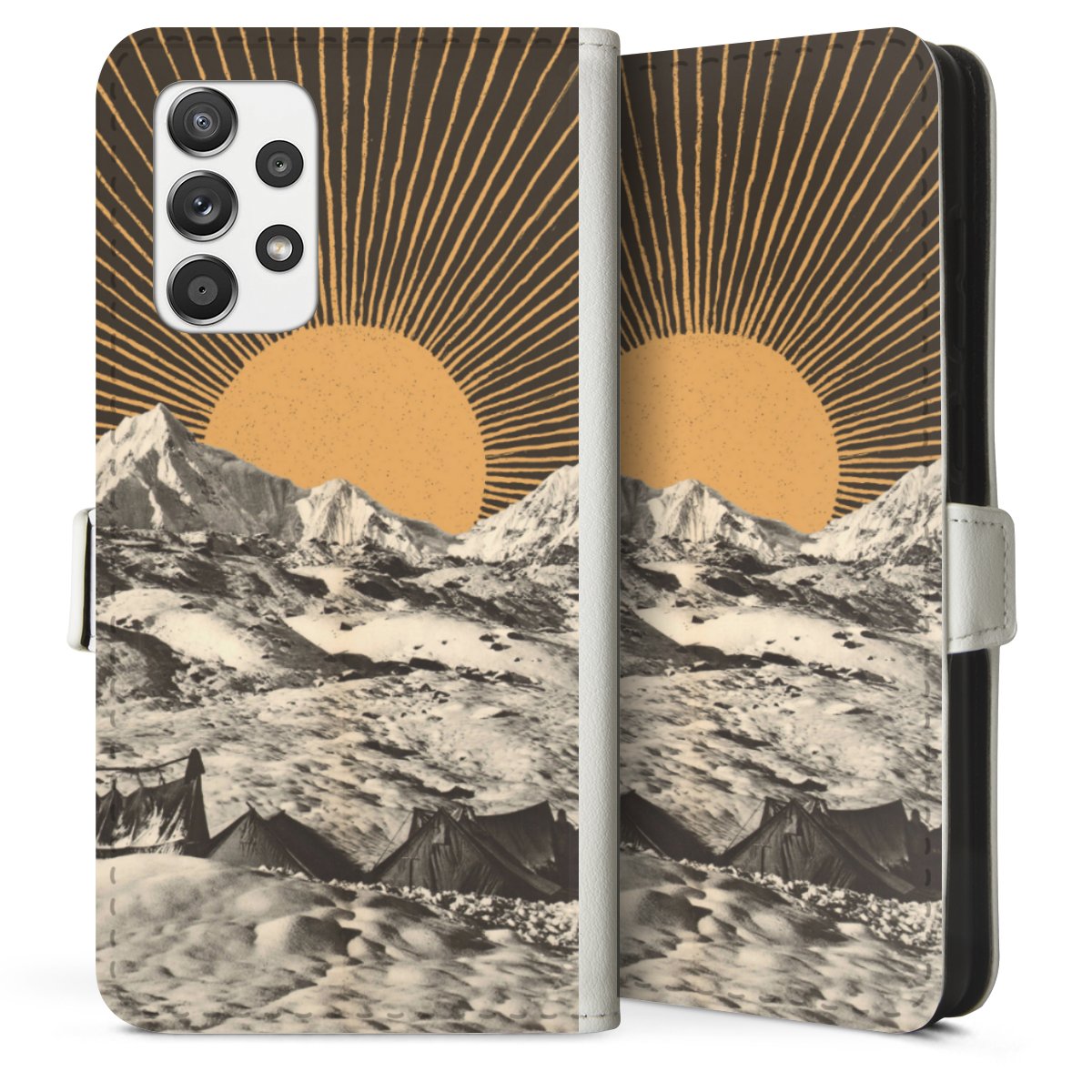 For our Sideflip Case we are using our advanced direct printing technology. The back and frontside are fully printabale, the inside of the phone bag is left unprinted. You can order the phone case without print, printed completely or also with a partial print.