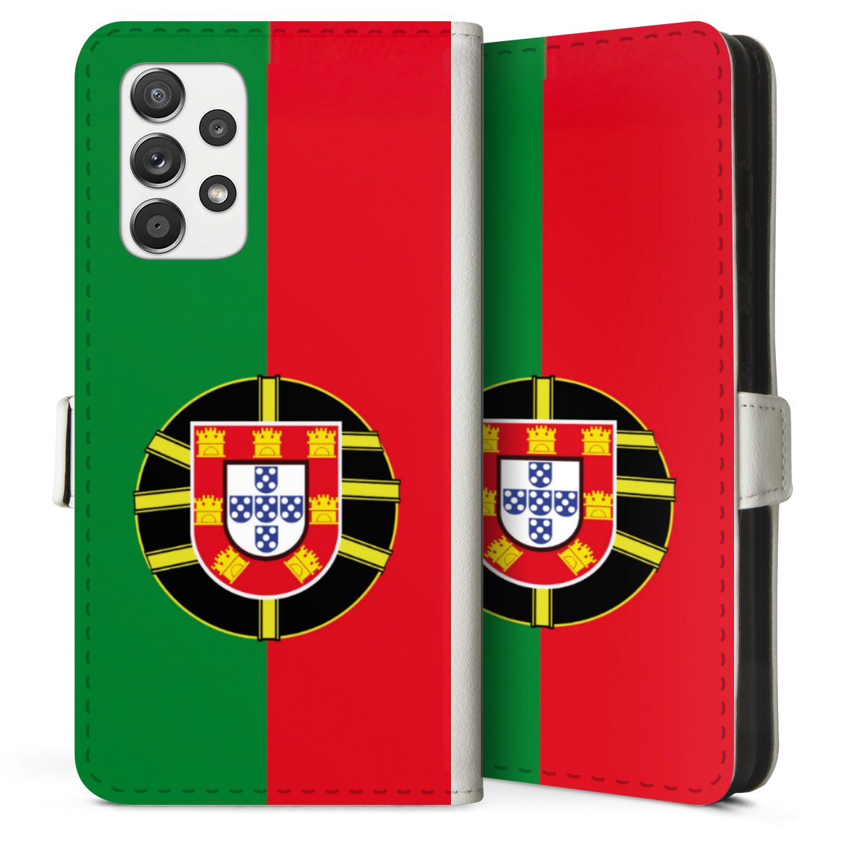 For our Sideflip Case we are using our advanced direct printing technology. The back and frontside are fully printabale, the inside of the phone bag is left unprinted. You can order the phone case without print, printed completely or also with a partial print.