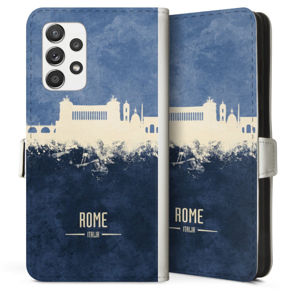 For our Sideflip Case we are using our advanced direct printing technology. The back and frontside are fully printabale, the inside of the phone bag is left unprinted. You can order the phone case without print, printed completely or also with a partial print.