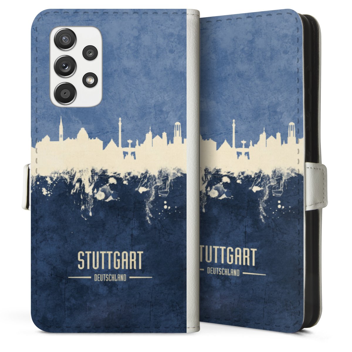 For our Sideflip Case we are using our advanced direct printing technology. The back and frontside are fully printabale, the inside of the phone bag is left unprinted. You can order the phone case without print, printed completely or also with a partial print.