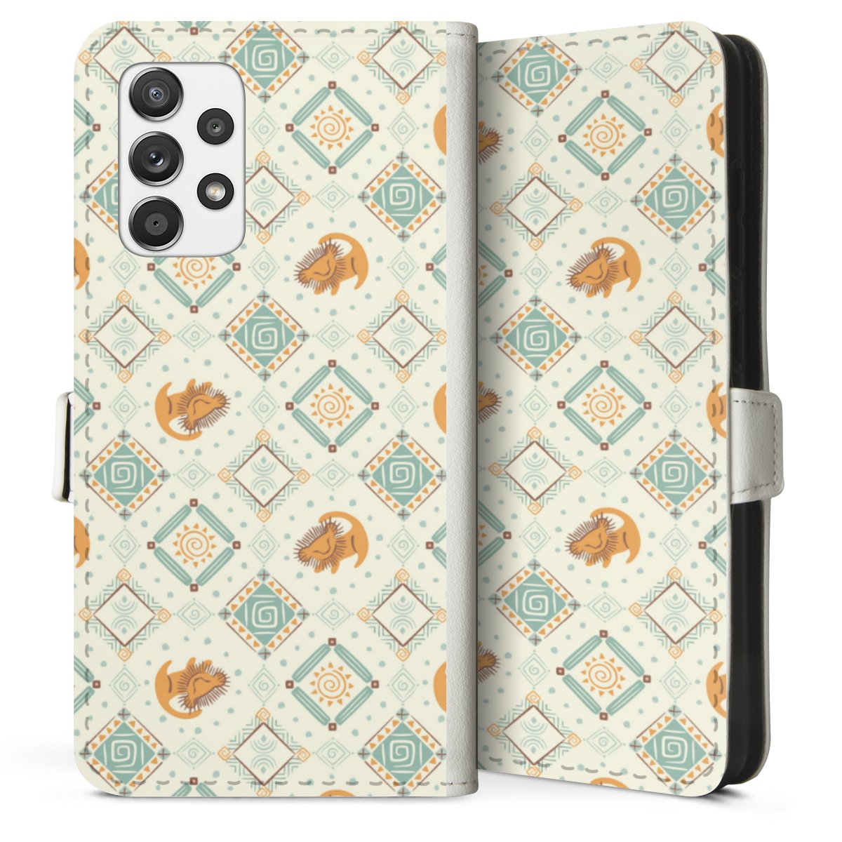 For our Sideflip Case we are using our advanced direct printing technology. The back and frontside are fully printabale, the inside of the phone bag is left unprinted. You can order the phone case without print, printed completely or also with a partial print.