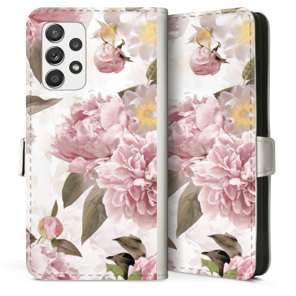 For our Sideflip Case we are using our advanced direct printing technology. The back and frontside are fully printabale, the inside of the phone bag is left unprinted. You can order the phone case without print, printed completely or also with a partial print.