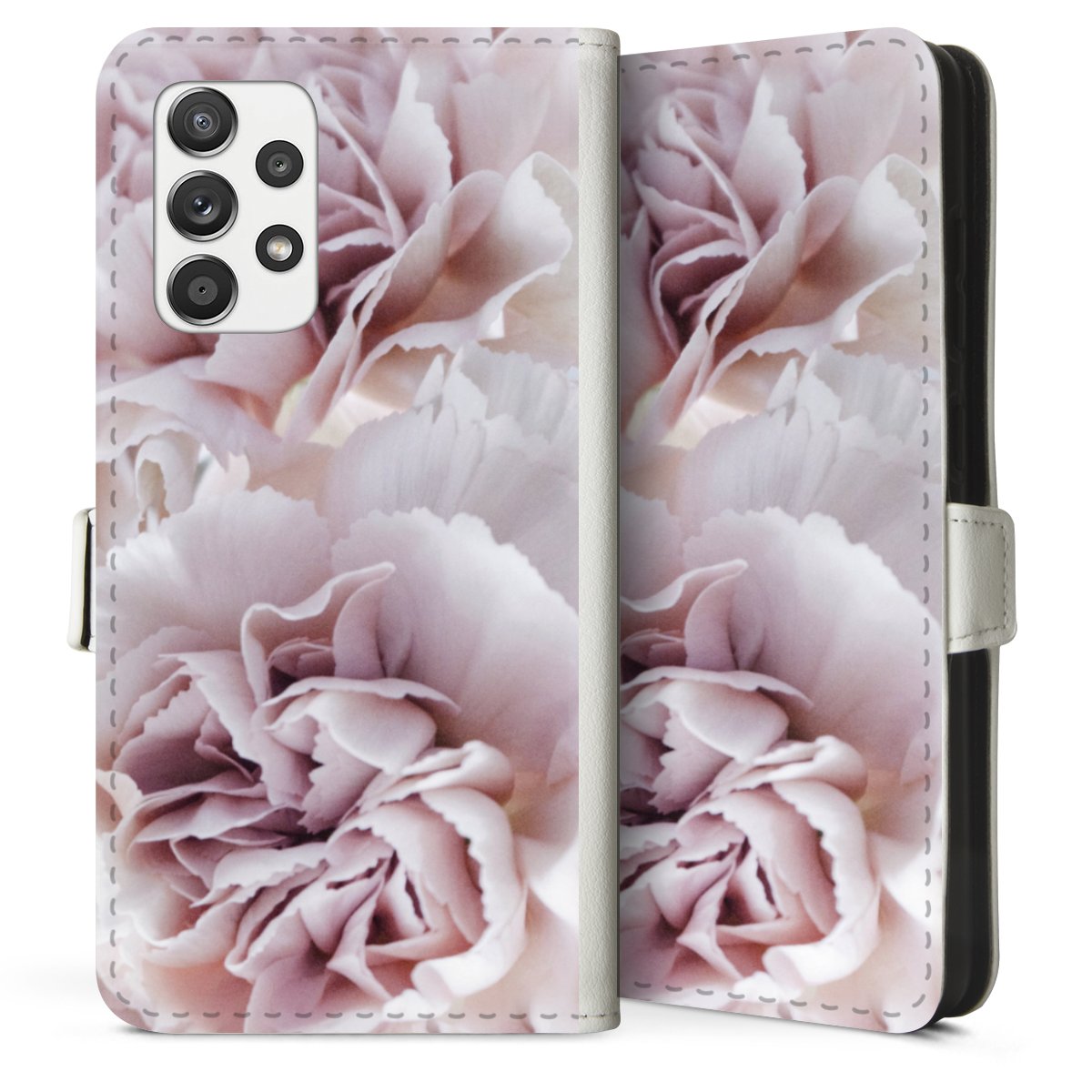 For our Sideflip Case we are using our advanced direct printing technology. The back and frontside are fully printabale, the inside of the phone bag is left unprinted. You can order the phone case without print, printed completely or also with a partial print.
