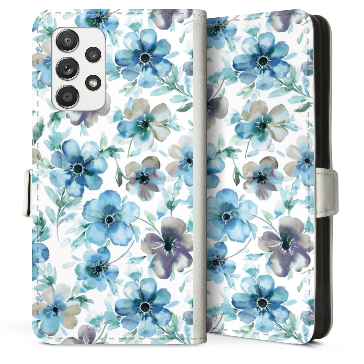 For our Sideflip Case we are using our advanced direct printing technology. The back and frontside are fully printabale, the inside of the phone bag is left unprinted. You can order the phone case without print, printed completely or also with a partial print.
