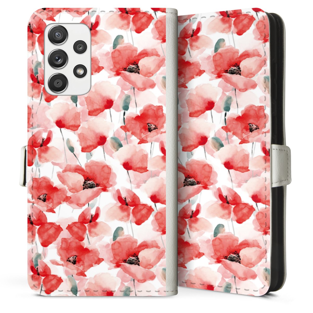 For our Sideflip Case we are using our advanced direct printing technology. The back and frontside are fully printabale, the inside of the phone bag is left unprinted. You can order the phone case without print, printed completely or also with a partial print.