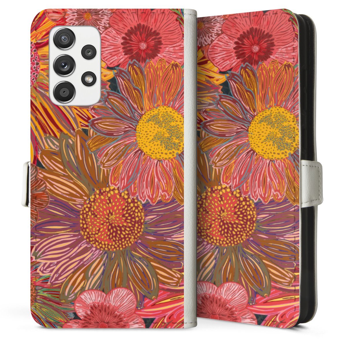 For our Sideflip Case we are using our advanced direct printing technology. The back and frontside are fully printabale, the inside of the phone bag is left unprinted. You can order the phone case without print, printed completely or also with a partial print.