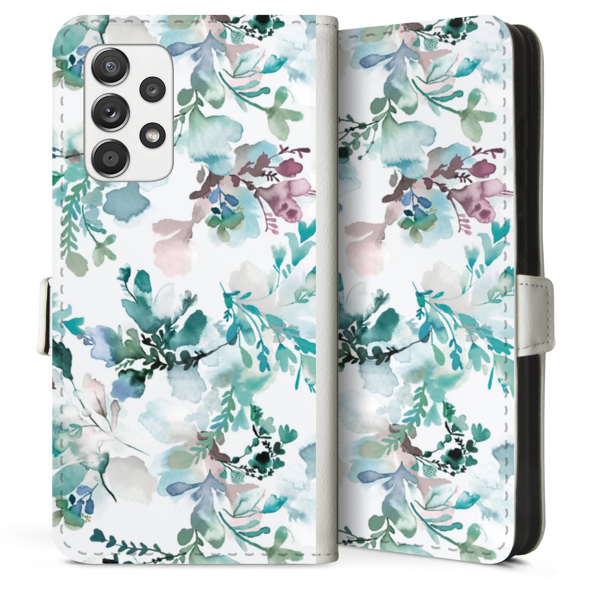 For our Sideflip Case we are using our advanced direct printing technology. The back and frontside are fully printabale, the inside of the phone bag is left unprinted. You can order the phone case without print, printed completely or also with a partial print.