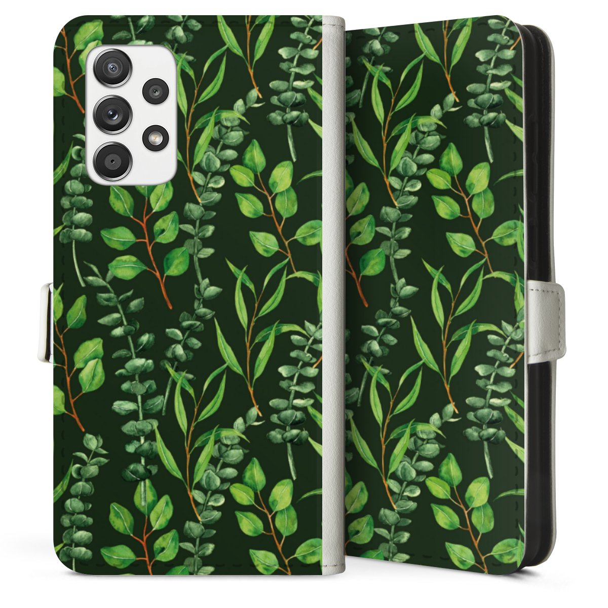 For our Sideflip Case we are using our advanced direct printing technology. The back and frontside are fully printabale, the inside of the phone bag is left unprinted. You can order the phone case without print, printed completely or also with a partial print.