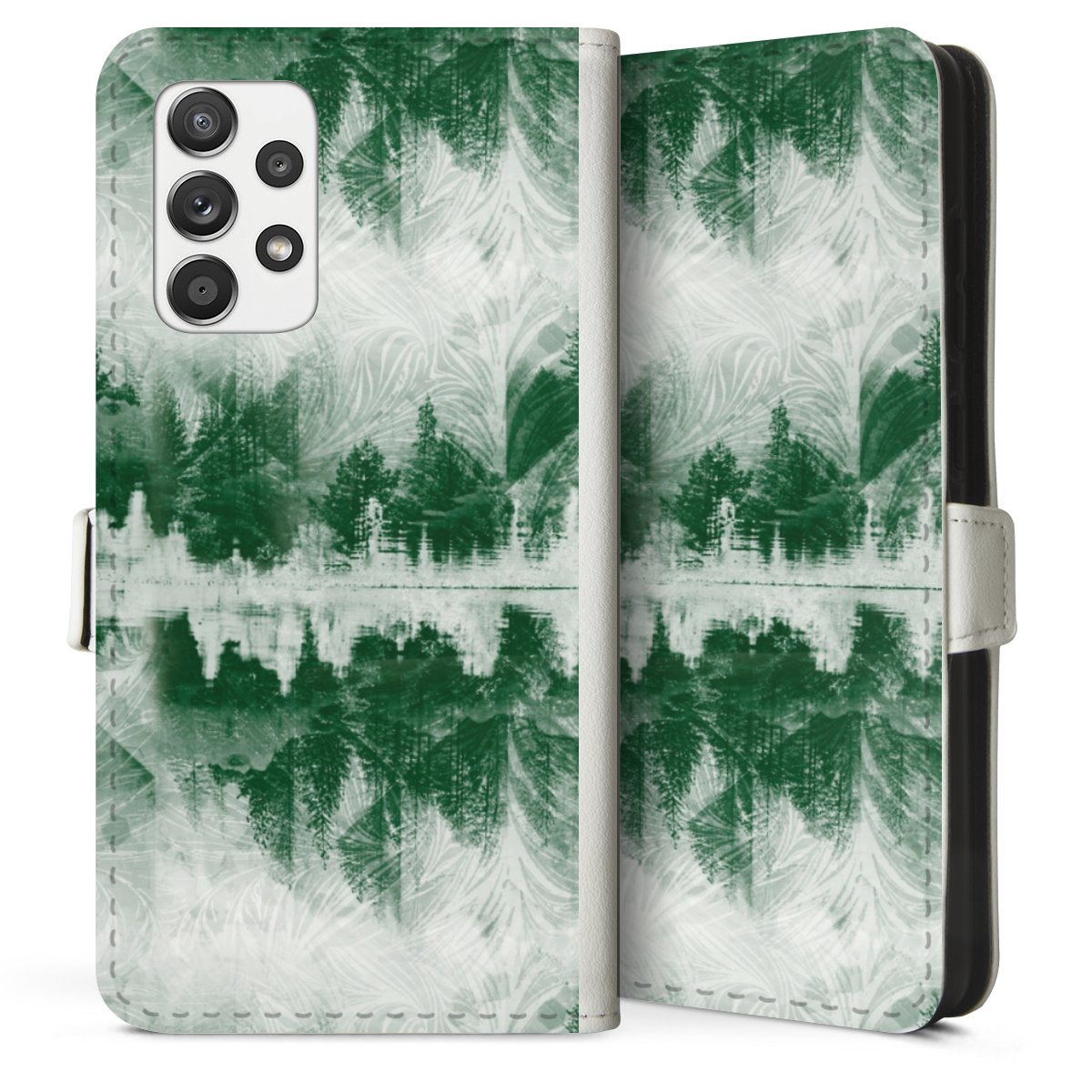 For our Sideflip Case we are using our advanced direct printing technology. The back and frontside are fully printabale, the inside of the phone bag is left unprinted. You can order the phone case without print, printed completely or also with a partial print.